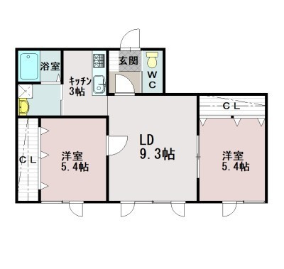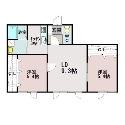 2LDK(52.11m²)└ LD9.3×K3×洋5.4×洋5.4
