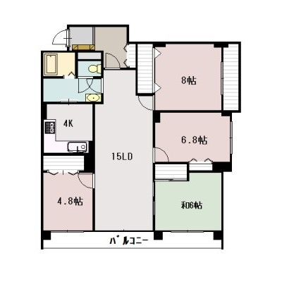 4LDK(98.84m²)└ LD15×K4×洋8×洋6.8×洋4.8×和6