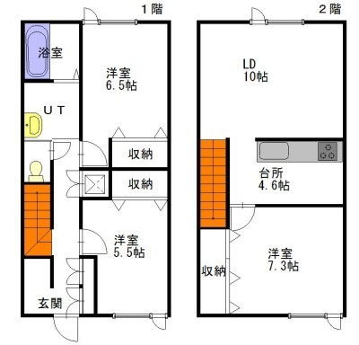 3LDK(82.8m²)└ LD10×K4.6×洋7.3×洋6.5×洋5.5