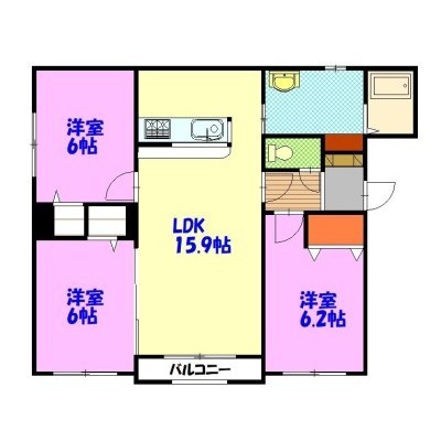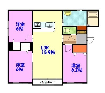 3LDK(74.37m²)└ LDK15.9×洋6.2×洋6×洋6