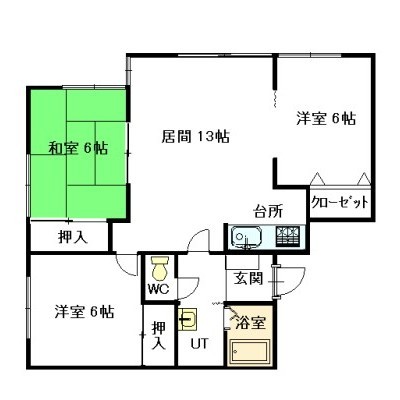 3LDK(56.7m²)└ LDK13×洋6×洋6×和6