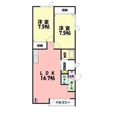 2LDK(64.44m²)└ LDK16.7×洋7.5×洋7.5
