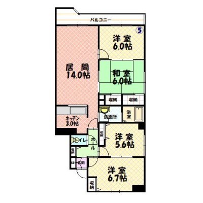 4LDK(84.3m²)└ LD14×K3×洋6.7×洋6×洋5.6×和6