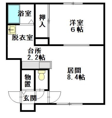 1LDK(39.42m²)└ LD8.4×K2.2×洋6