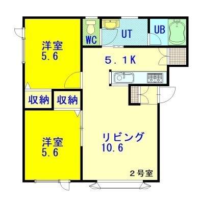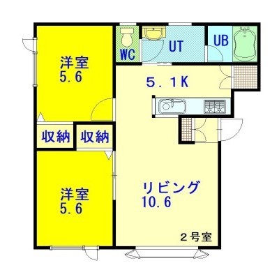 2LDK(53.57m²)└ LD10.6×K5.1×洋5.6×洋5.6