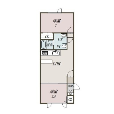 2LDK(51.66m²)└ LDK11.5×洋7×洋5.5
