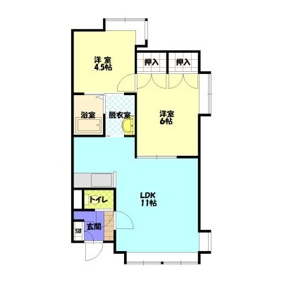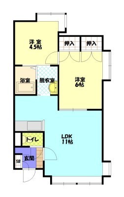 2LDK(45.63m²)└ LDK11×洋6×洋4.5