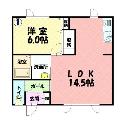 1LDK(44.55m²)└ LDK14.5×洋6