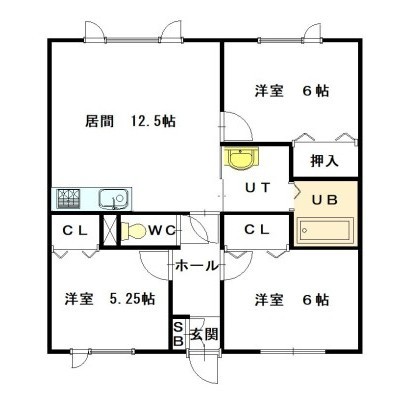 3LDK(65.61m²)└ LDK12.5×洋6×洋6×洋5.2