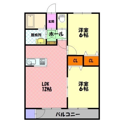 2LDK(52.9m²)└ LDK12×洋6×洋6