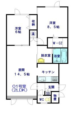 2LDK(70.69m²)└ LD14.5×洋8.5×洋6