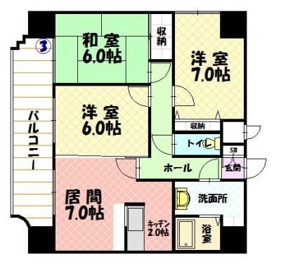 3DK(64.42m²)└ D7×K2×洋7×洋6×和6