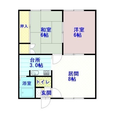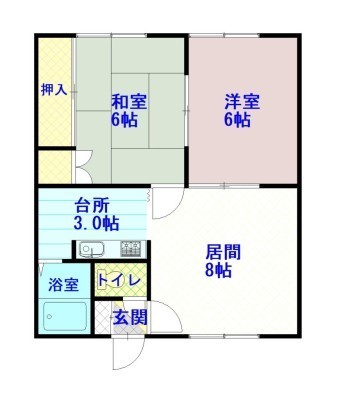 2LDK(45.36m²)└ LD8×K3×洋6×和6
