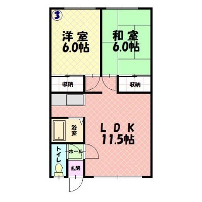 2LDK(48.6m²)└ LDK11.5×洋6×和6