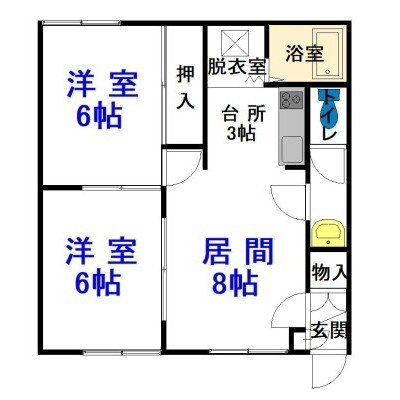 2LDK(47.46m²)└ LD8×K3×洋6×洋6