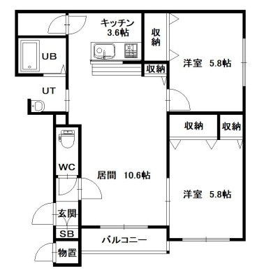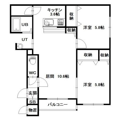 2LDK(56.23m²)└ LD10.6×K3.6×洋5.8×洋5.8