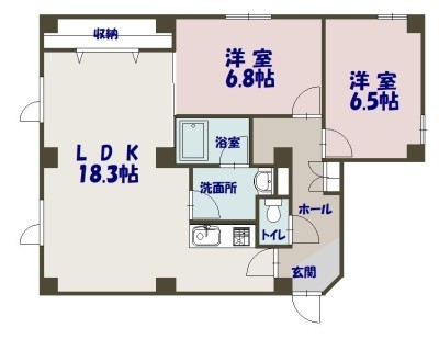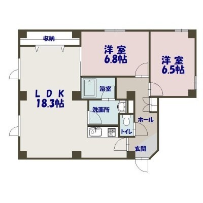 2LDK(69.51m²)└ LDK18.3×洋6.8×洋6.5