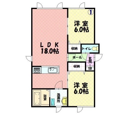 2LDK(62.76m²)└ LDK18×洋6×洋6
