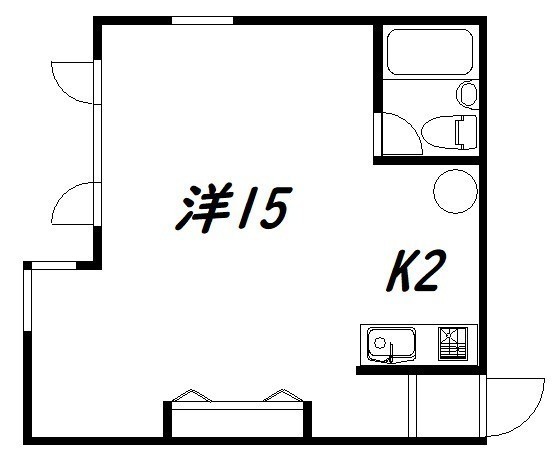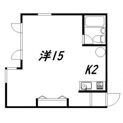 ワンルーム(38.29m²)└ 洋室15帖 K2帖