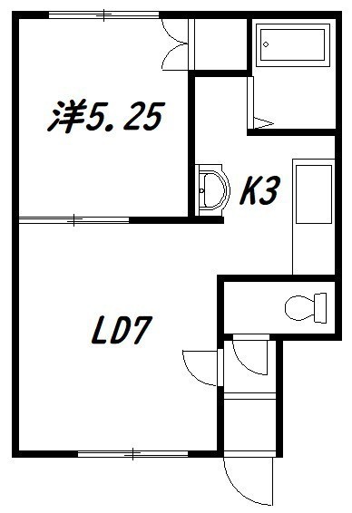 1LDK└ LD7帖 K3帖 洋室5.25帖