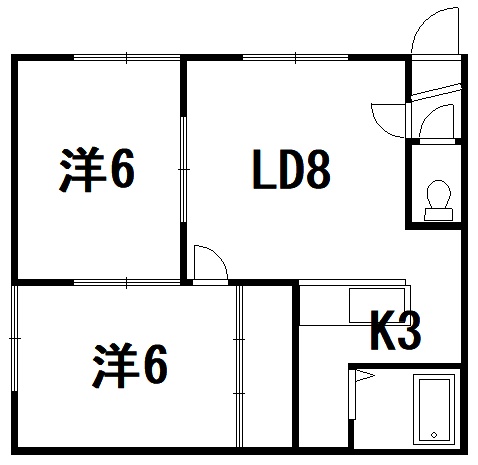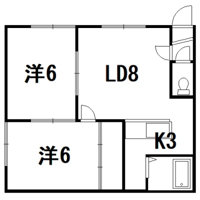 2LDK(45.36m²)└ LD8帖 K3帖 洋室6帖 洋室6帖