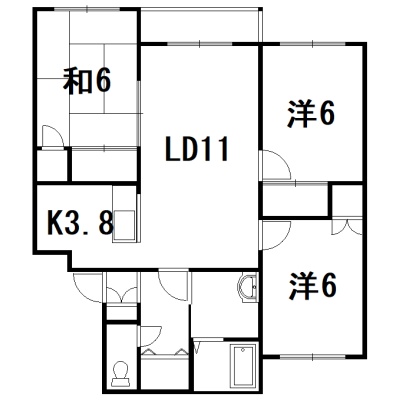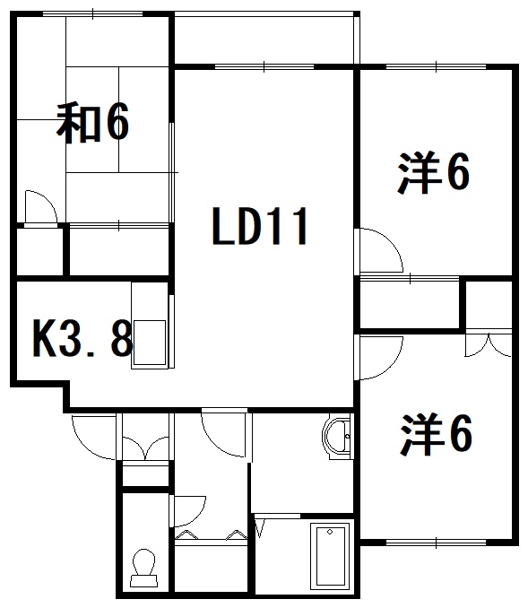 3LDK(70.85m²)└ LD11帖 K3.8帖 和室6帖 洋室6帖 洋室6帖