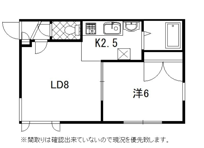 1LDK(32.4m²)└ LD8帖 K2.5帖 洋室6帖