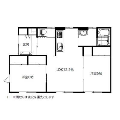 2LDK(61.27m²)└ 1階:LDK12.1帖 洋室6帖 洋室6帖