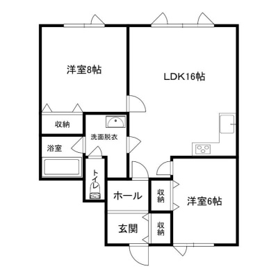 2LDK(64.59m²)└ 1階:LDK16帖 洋室8帖 洋室6帖
