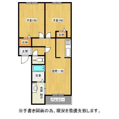 2LDK(55.07m²)└ LDK11帖 洋室6帖 洋室6帖