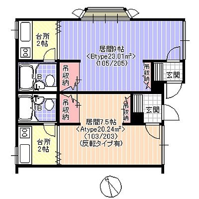 備考 ※令和6年9月外壁リフォーム済 ※室内写真は205号室です ※102・103・202~7.5/K2(Atype)20.24㎡:賃料30,000円 学区色がついているアイコンをクリックすると、本物件までの道順を見ることができます。