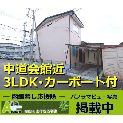 ここに注目!■中道会館近くの北東角地の一戸建貸家のご紹介です。間取は専有面積66.23㎡の3LDKtype。全居室収納に加え、床下収納や物置を完備。駐車場はカーポート付で雨の日も乗り降りスムーズ。ただし、駐車可能な車種は小型車に限ります。温水洗浄トイレ、モニタ付インターホン、灯油ボイラーなど、暮らしを快適にする設備が充実。徒歩5分圏内にコンビニが2軒、病院へも徒歩6分、スーパーも徒歩圏内にあり、日々の暮らしに便利な住環境です■物件に関することは「㈲あすなろ宅建☎0138-45-2103(よいふどうさん)」までお気軽にお問い合わせください☆★☆