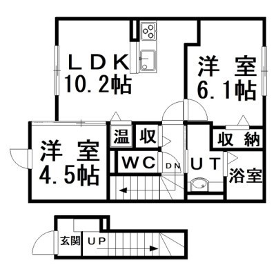 2LDK(54.44m²)└ LDK10.2×洋4.5×洋6.1