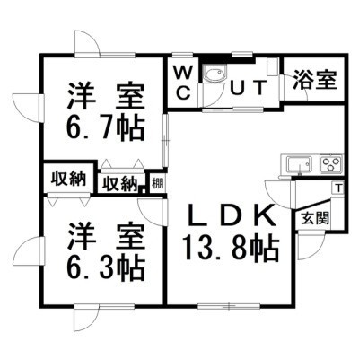 2LDK(54.65m²)└ LDK13.8×洋6.3×洋6.7