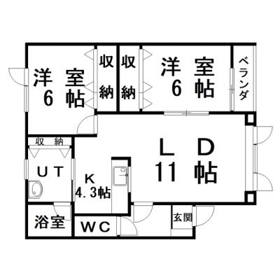 2LDK(65.61m²)└ LD11×K4.3×洋6×洋6
