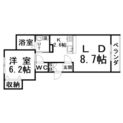 1LDK(43.03m²)└ LD8.7×K2.6×洋6.2
