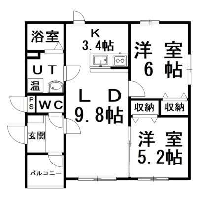 2LDK(53.71m²)└ LD9.8×K3.4×洋6×洋5.2