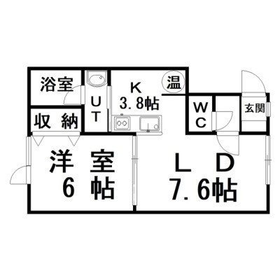 1LDK(39.46m²)└ LD7.6×K3.8×洋6