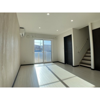 ここに注目!ゆったり駐車場・広々3LDK、1Fリビングにバルコニー付♪ メゾネットタイプ3LDKです。メゾネットは1世帯で1階2階使用できるので、上下騒音も軽減されます★南向きで明るい!広々とした3LDK、バルコニーで解放感も!エアコンも付いてますので夏も快適☆