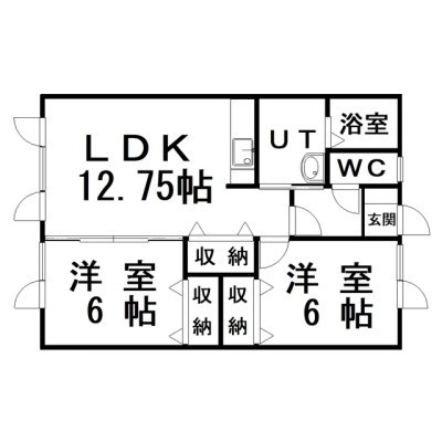 2LDK(56.7m²)└ LDK12.7×洋6×洋6