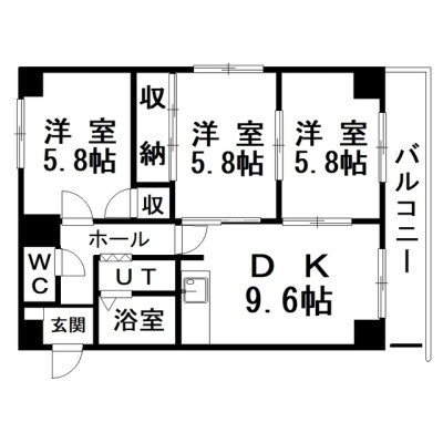 3DK(58.85m²)└ LDK9.6×洋5.8×洋5.8×洋5.8