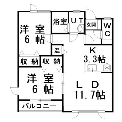 2LDK(61.69m²)└ LD11.7×K3.3×洋6×洋6