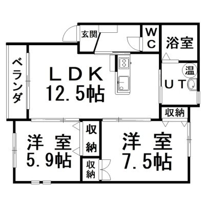 2LDK(57.88m²)└ LDK12.5×洋5.9×洋7.5
