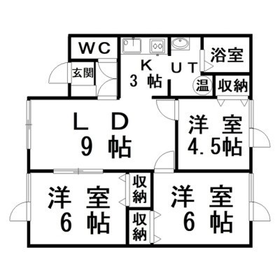 3LDK(59.94m²)└ LD9×K3×洋6×洋6×洋4.5
