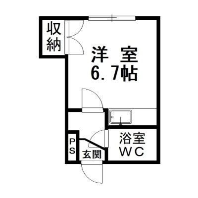 ワンルーム(15.87m²)└ 洋6.7