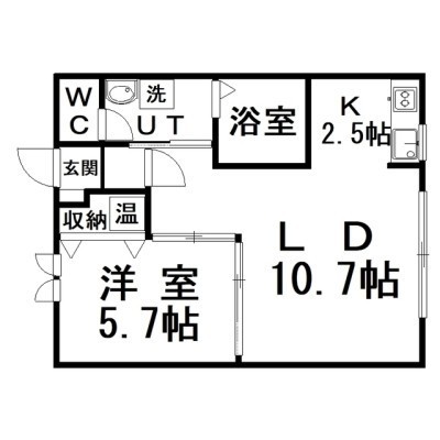 1LDK(41.93m²)└ LD10.7×K2.5×洋5.7
