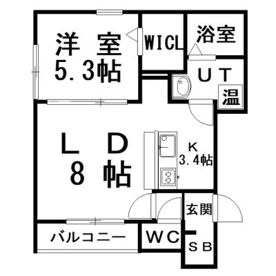 1LDK(39.75m²)└ LD8×K3.4×洋5.3