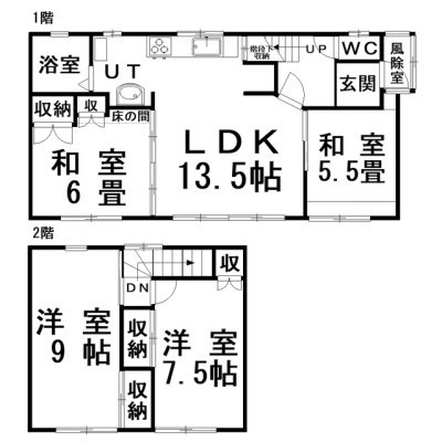 4LDK(93.57m²)└ LDK13.5×和6×和5.5×洋9×洋7.5