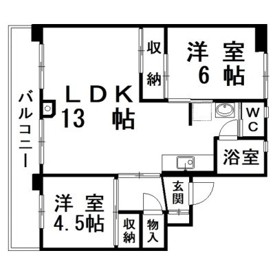 2LDK(55.99m²)└ LDK13×洋6×洋4.5
