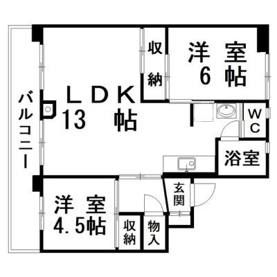 2LDK(55.99m²)└ LDK13×洋4.5×洋6